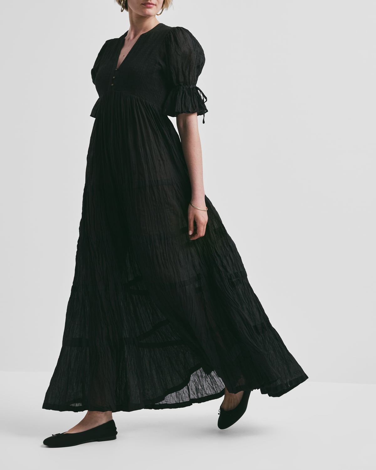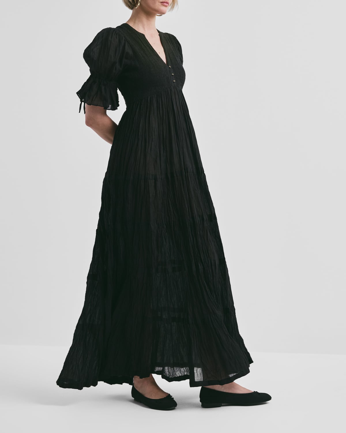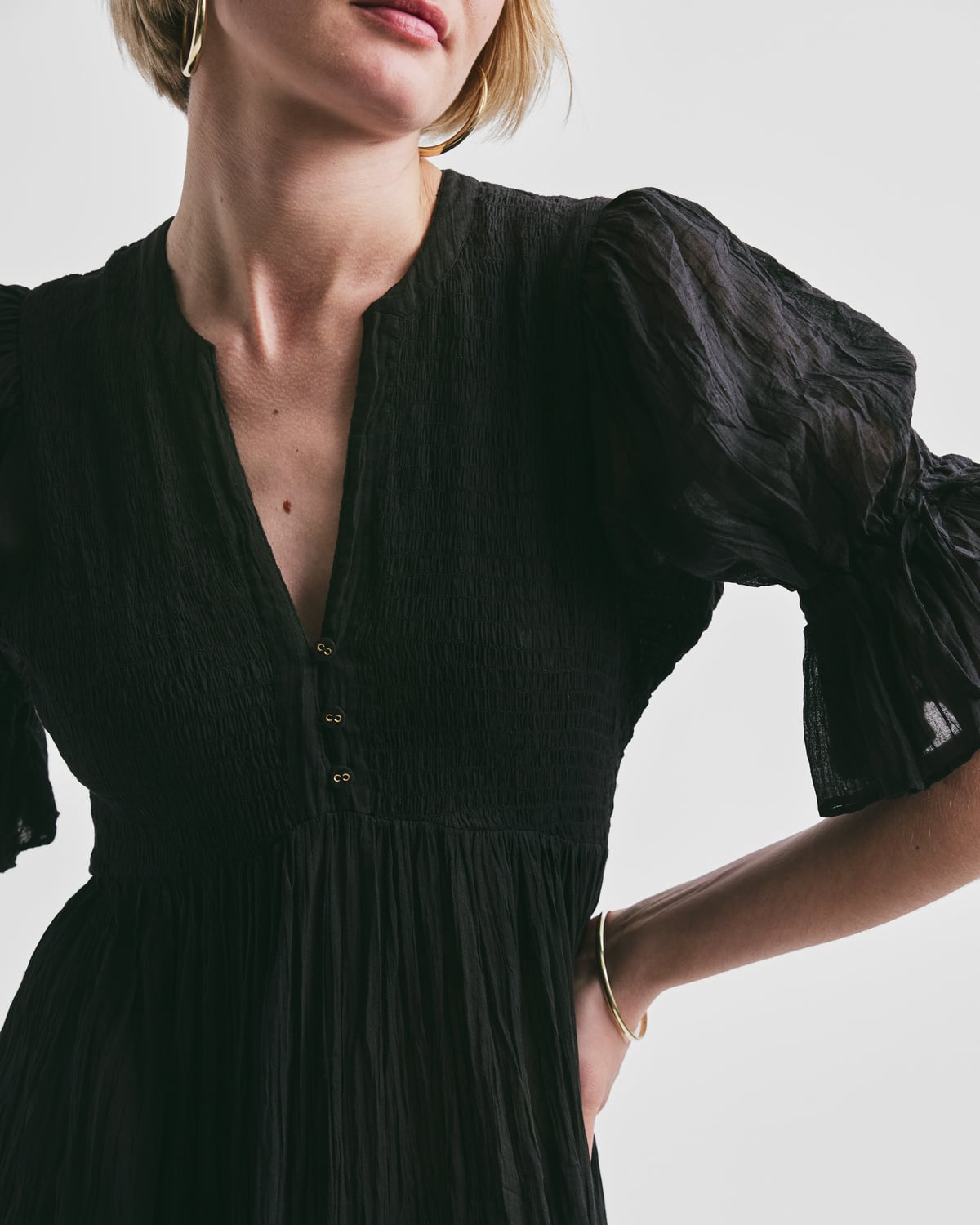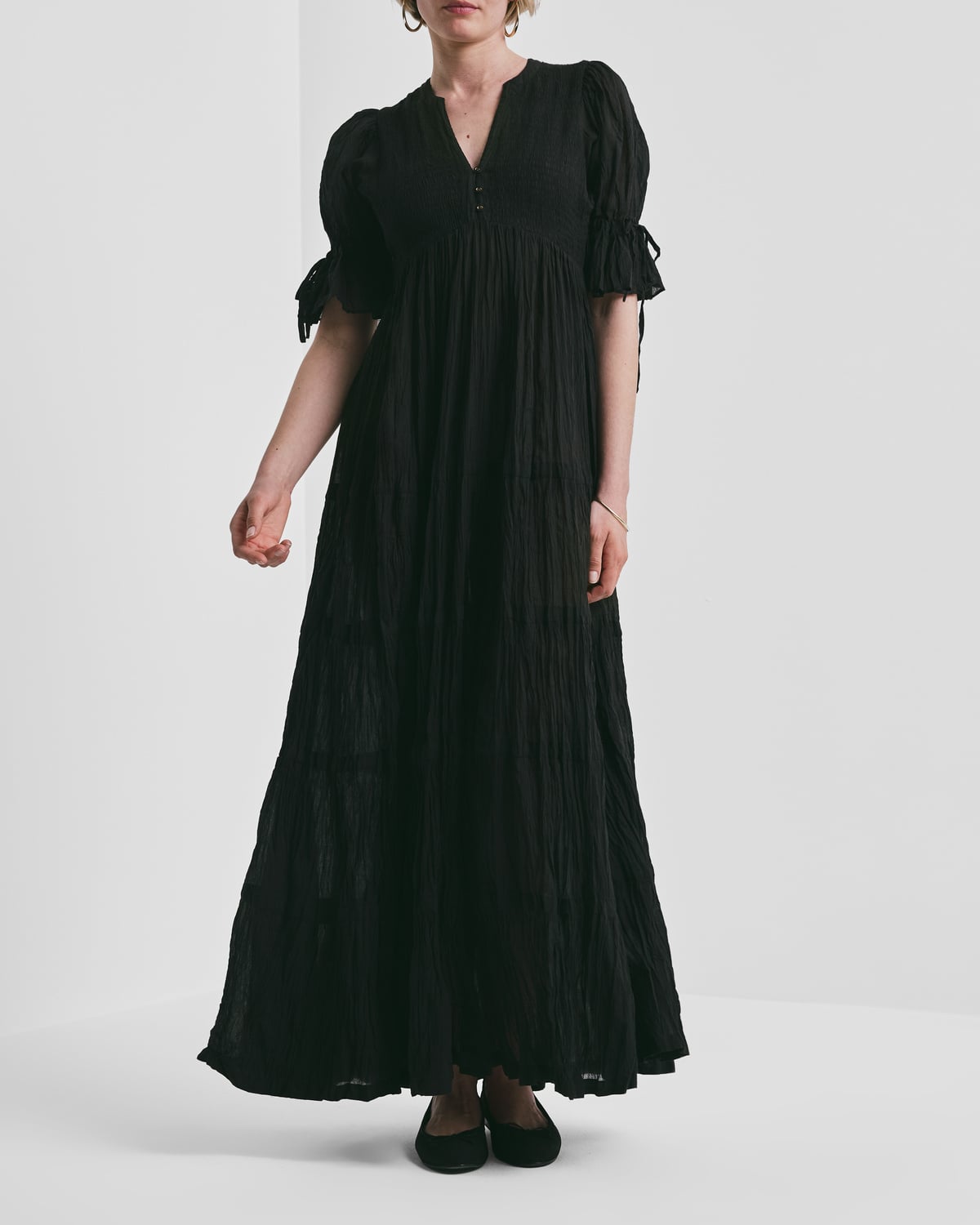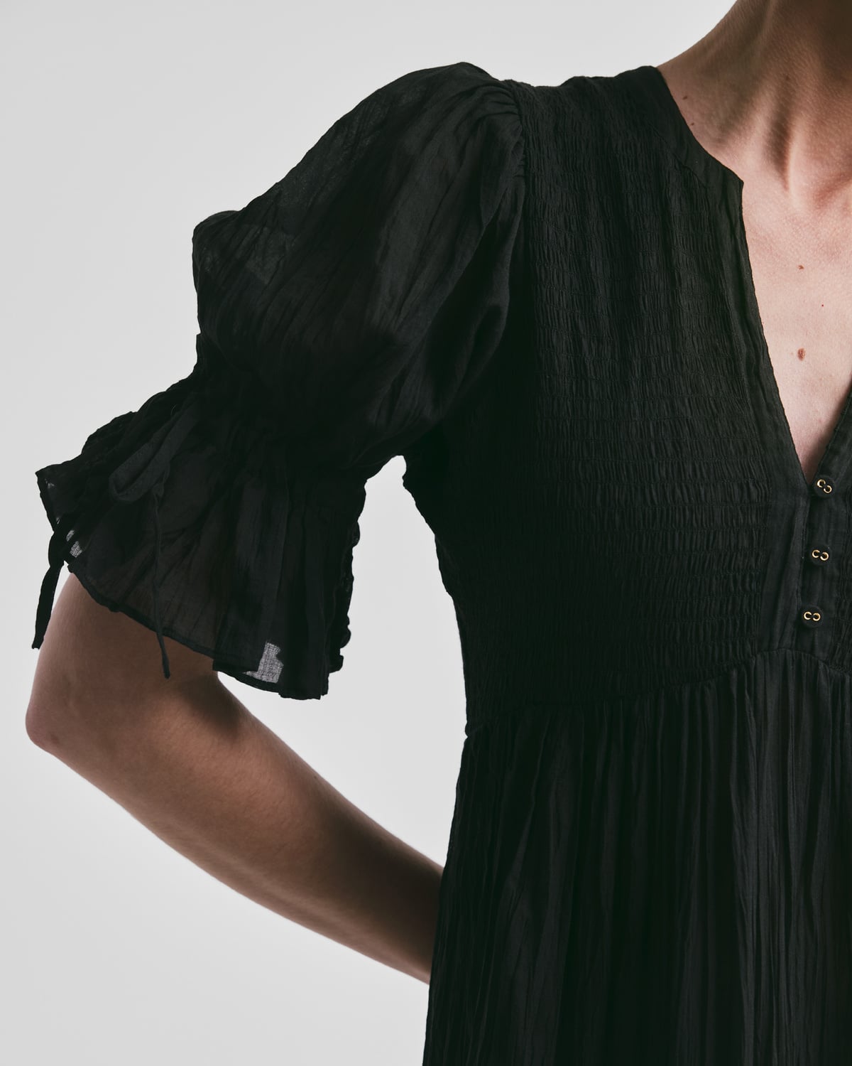 • Fitted top of elastic smocking