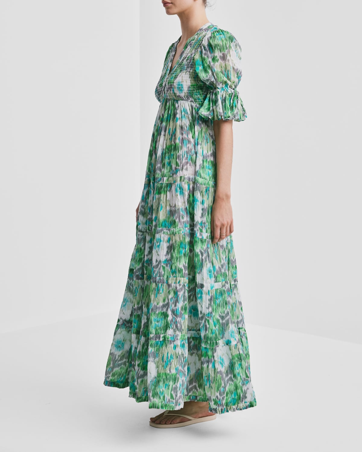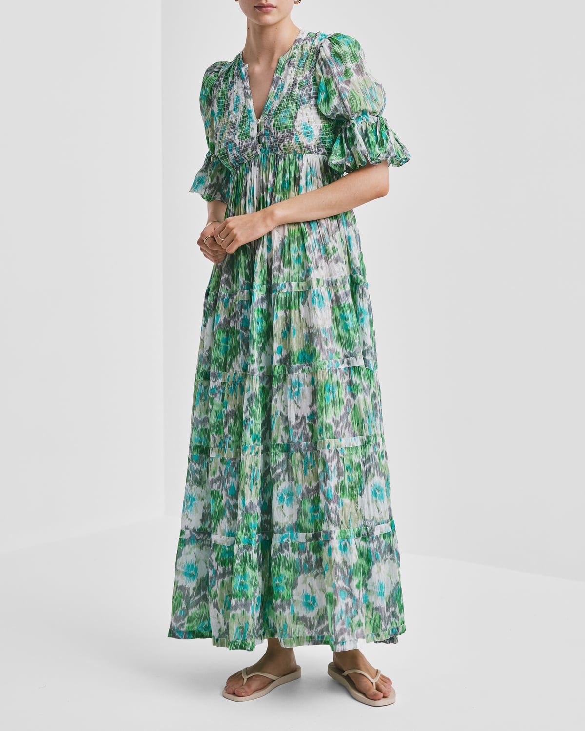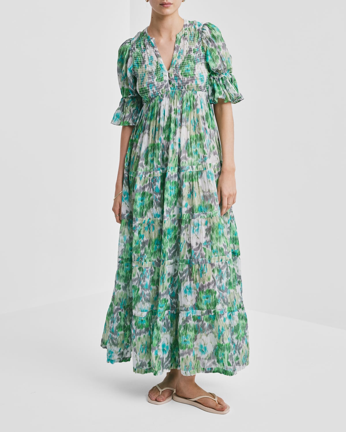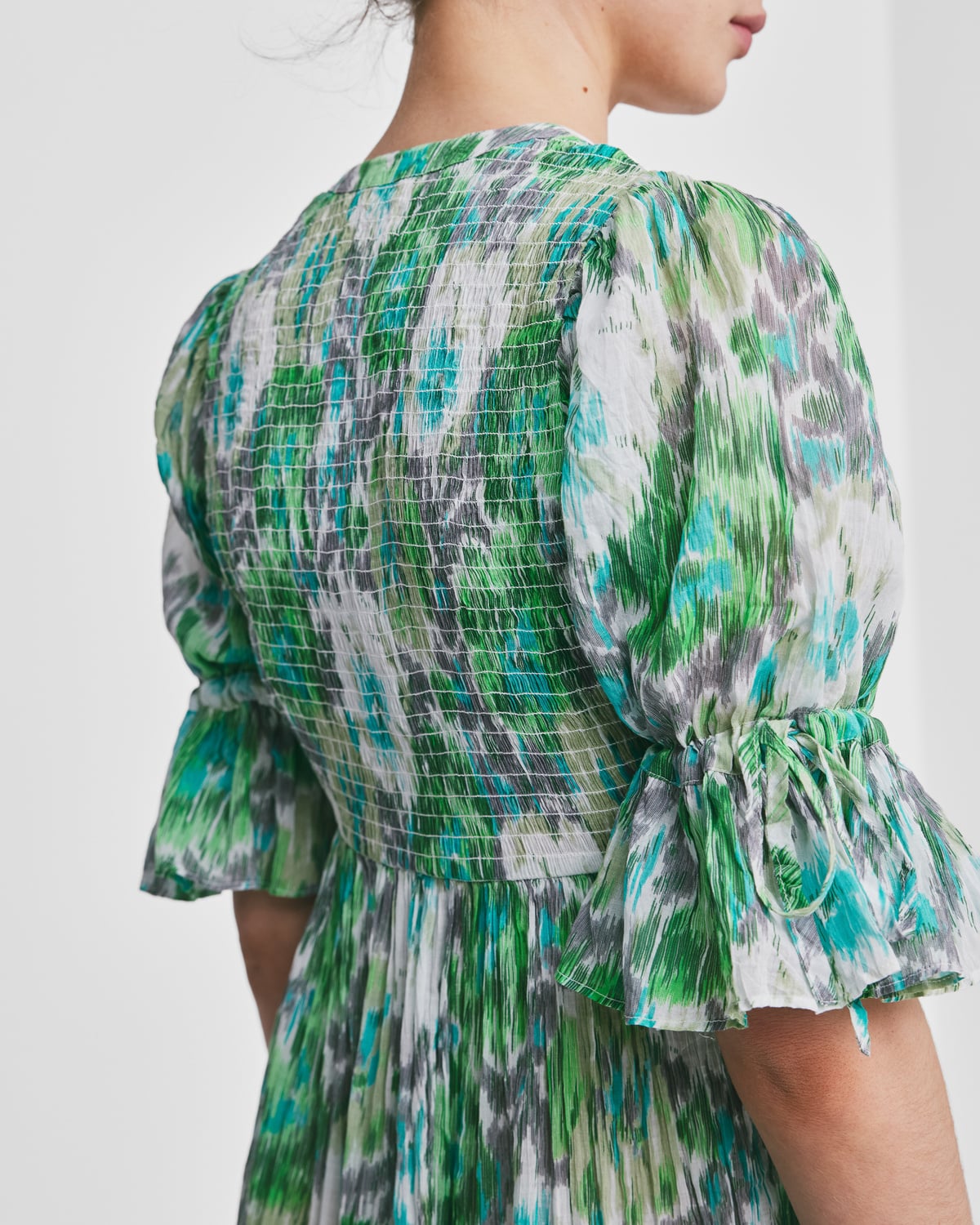 - Fitted top of elastic smocking