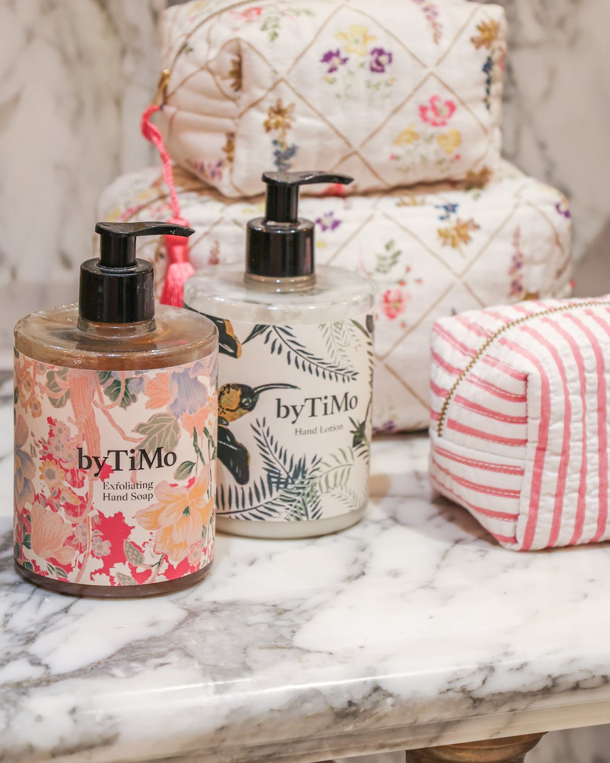 - Exfoliating Hand Soap 500ml - Ingredients: Aqua, Aloe Barbadensis Leaf Juice, Sodium Laureth Sulfate, Glycerin, Coco-Glucoside, Prunus Armeniaca Seed Powder, Acrylates/C10-30 Alkyl Acrylate Crosspolymer, Phenoxyethanol, Sodium Hydroxide, Citric Acid, Sodium Benzoate, Polyglyceryl-4 Caprate, Alcohol, Sodium Gluconate, Mangifera Indica Fruit Extract, Malpighia Glabra Fruit Extract, Potassium Sorbate, Parfum, Limonene, Citral, Linalool, Geraniol.